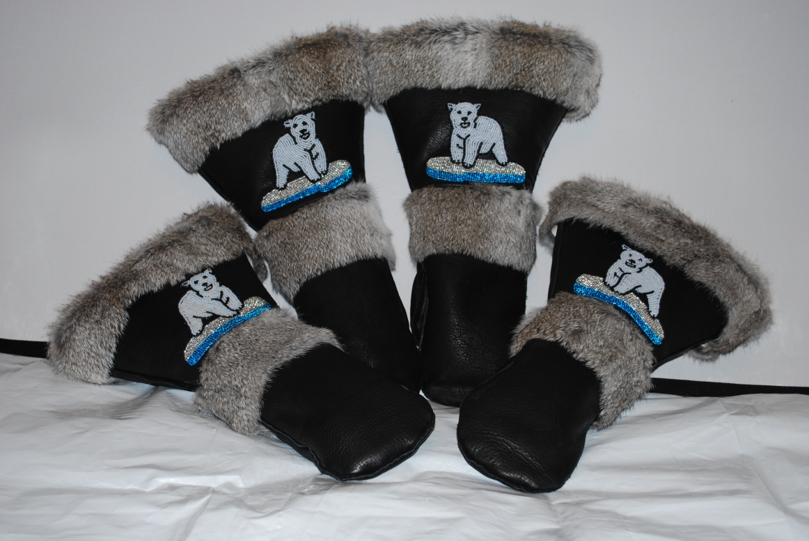 Unique works of art, completely Hand Beaded and Stitched, Sizes Large and Extra Large, Beautiful Black Bison Leather, Rabbit Fur Trim, toasty warm shearling wool lining.